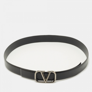 Valentino Black Leather VLogo Buckle Belt 90CM