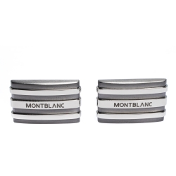 Montblanc Monograin Black Leather Inlay Steel Cufflinks