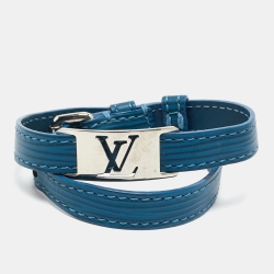Louis Vuitton Cyan Epi Leather Silver Tone Bracelet 19