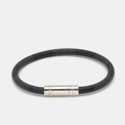 Louis Vuitton Canvas Damier Ebene Keep It Canvas Silver Tone Bracelet
