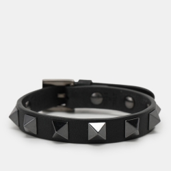 Valentino Black Leather Rockstud Bracelet