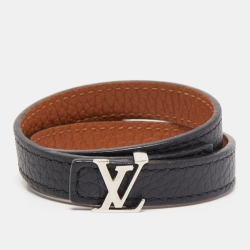 Louis Vuitton Black/Brown Leather LV Initiales Reversible Double Wrap Bracelet