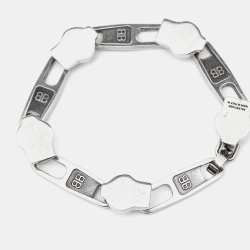 Balenciaga Silver Tone Zip Logo Motif Link Bracelet M