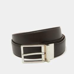 Brioni Dark Brown Leather Cut to Size Reversible Buckle Belt