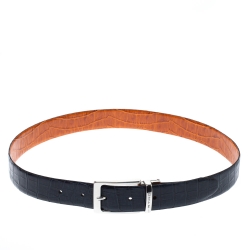 Etro Dark Teal Alligator Embossed Leather Buckle Belt 105 CM