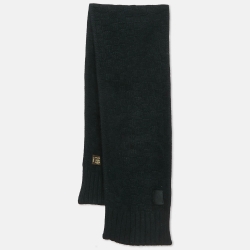 Louis Vuitton Black Logo Intarsia Knit Wool & Cashmere Fringed Muffler