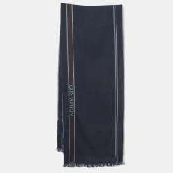 Louis Vuitton Navy Blue & Grey Logo Monogram Wool Scarf