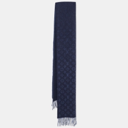 Louis Vuitton Navy Blue Wool and Cashmere Monogram Gradient Scarf