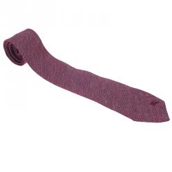 Burberry Maroon Silk and Linen Blend Tie