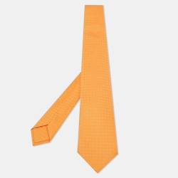 Hermès Orange Faconnee H Silk Tie
