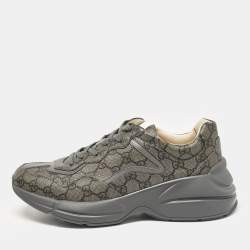 Gucci Grey Leather and Mesh Ripple Sneakers Size 44.5