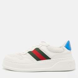 Gucci White Micro Guccissima Leather Torino Web Detail Low Top Sneakers Size 43