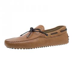Tod's Beige and Grey Printed Leather Bow Loafers Size 44.5