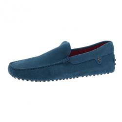 Tod's for Ferrari Blue Suede and White Leather Loafers Size 42.5