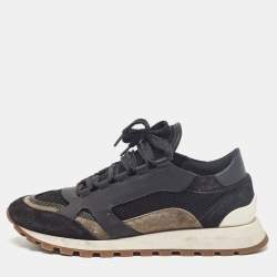 Brunello Cucinelli Grey Mesh And Suede Low Top Sneakers Size 40