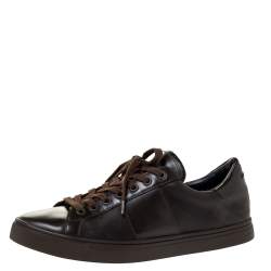 Burberry Brown Leather And Canvas Rettford Low Top Sneakers Size 44