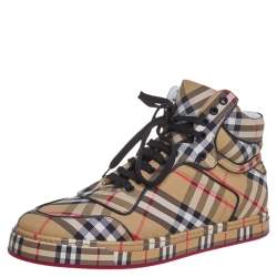 Burberry Beige Signature Check Canvas Reeth High Top Sneakers Size 44