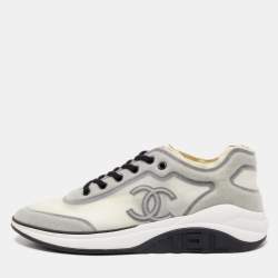 Chanel Grey/Black Suede and Leather CC Low-Top Sneakers Size 45