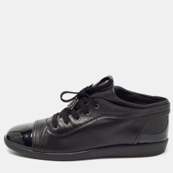 Chanel Black Patent Leather, PVC and Leather CC Logo Lace Up Sneakers Size 45