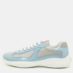 Prada Sport America's Cup Size 41.5 Blue/Grey Mesh and Patent Leather Low Top Sneakers