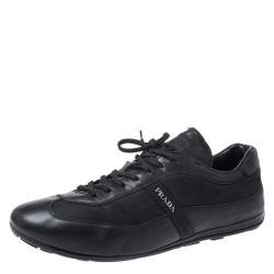 Prada Black Leather And Knit Fabric Low Top Sneakers Size 45