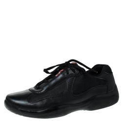 Prada Black Leather And Fabric Low Top Sneakers Size 41