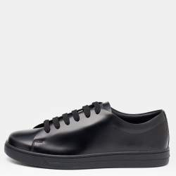 Prada Black Leather Logo Lace Low Top Sneakers Size 42