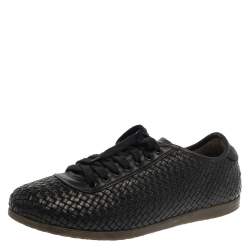 Salvatore Ferragamo Black Woven Leather Low Top Lace Sneaker Size 43.5