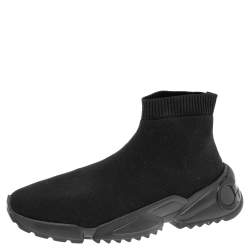 Salvatore Ferragamo Black Knit Fabric Gancini Sock Sneakers Size 45