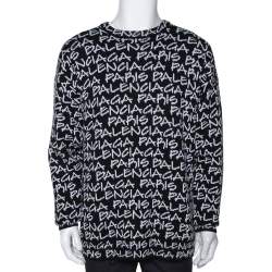 Balenciaga Monochrome Logo Jacquard Wool Crew Neck Sweater M