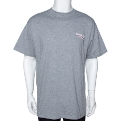 Balenciaga Light Grey Cotton Wave Logo Print T Shirt S