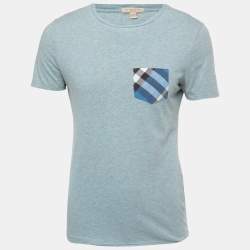 Burberry Black Cotton Checked Pocket Detail Crew Neck T-Shirt S