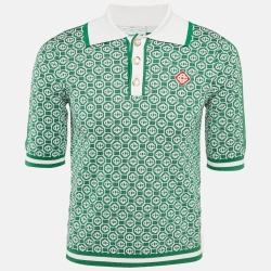 Casablanca Green Logo Lurex Jacquard Polo T-Shirt S