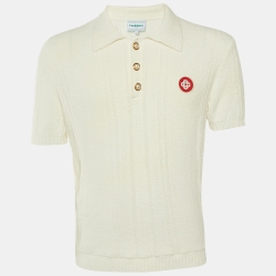 Casablanca Ivory Boucle Knit Polo T-Shirt M