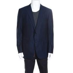 Ermenegildo Zegna Dark Blue Patterned Wool Blazer XXL