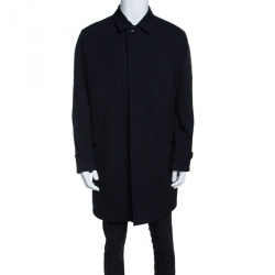 Ermenegildo Zegna Navy Blue Wool Gabardine Leather Trim Long Jacket XL