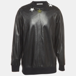 Givenchy Black Lambskin & Neoprene Star Embroidered Sweatshirt M