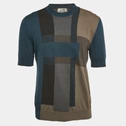 Hermes Navy Blue Patterned Cotton Round Neck Shirt L