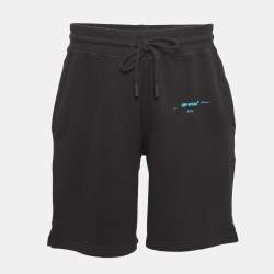 Off-White Grey Logo Print Cotton Drawstring Joggers L