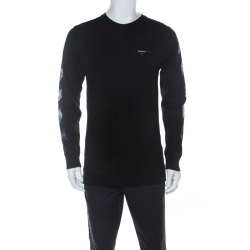 Off White Black Logo Intarsia Knit Cotton Distressed Jumper S
