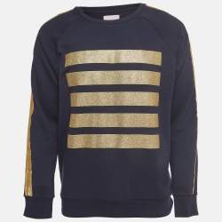 Palm Angels Navy Blue/ Gold Glitter Stripe Cotton Long Sleeve Sweatshirt L