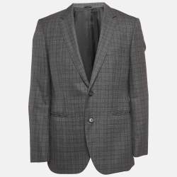 Boss By Hugo Boss Grey Patterned Virgin Wool Blazer XL