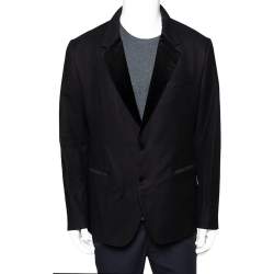 Dolce & Gabbana Black Abstract Printed Wool Button Front Tailored Blazer L