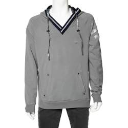 Emporio Armani Grey Cotton Knit Contrast Trim hooded Sweatshirt 3XL