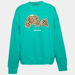 Palm Angels Green Leopard Bear Embroidered Cotton Knit Sweatshirt L