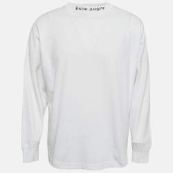 Palm Angels White Logo Print Cotton Knit Crew Neck Sweatshirt XS