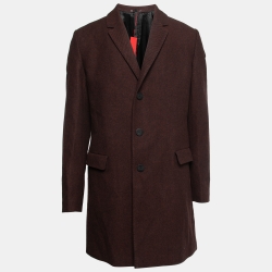 Hugo By Hugo Boss Burgundy Striped Wool Single-Breasted Coat XL