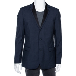 Hugo Boss Blue Wool Contrast Lapel Trim Single Breasted Aderik/Heise Blazer L