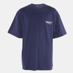 Balenciaga Blue Cotton Logo Print Half Sleeve T-Shirt S