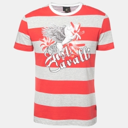 Just Cavalli Pink and Grey Striped Crew Neck T-Shirt XL
